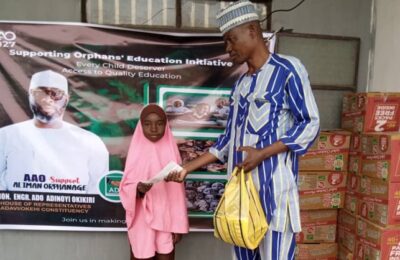 Engr Ado Okikiri Distributes Food Items, Offset Orphaned Pupils’ School Fees in Adavi