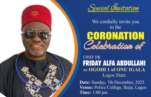 The Onu Igala General of Lagos State has officially announced the forthcoming coronation of Chief Friday Alfa Abdullahi as the Ogohi 1 of Onu Igala General, Lagos State, Nigeria, in what promises to be a colourful celebration of culture, heritage, and unity.