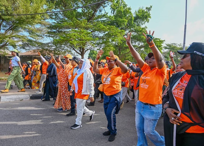 The Governor’s wife with other dignitaries had earlier in the morning led Kogi women and girls on a road walk across Lokoja streets on campaign to stop violence against women and girls in the state and Nigeria at large.