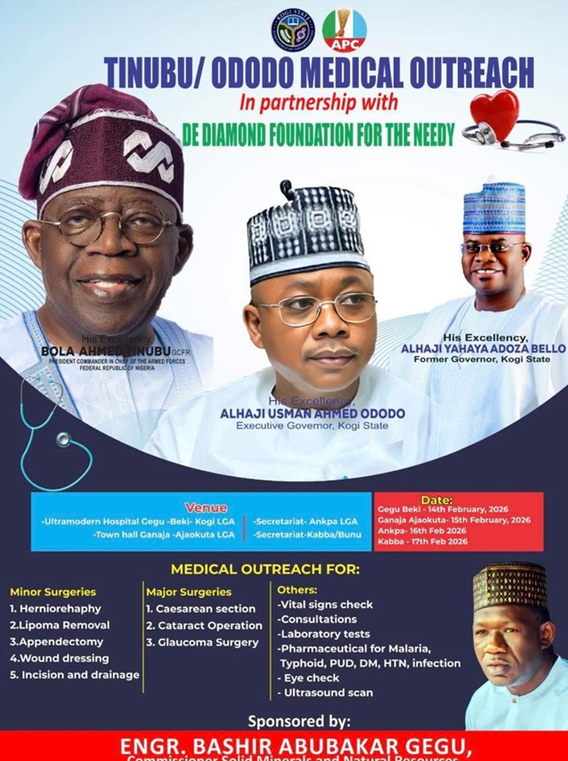 The program, which includes medical consultations, medications, vaccinations, surgeries, and specialist care, aims to support President Ahmed Bola Tinubu and Gov. Usman Ahmed Ododo’s efforts in providing good leadership.