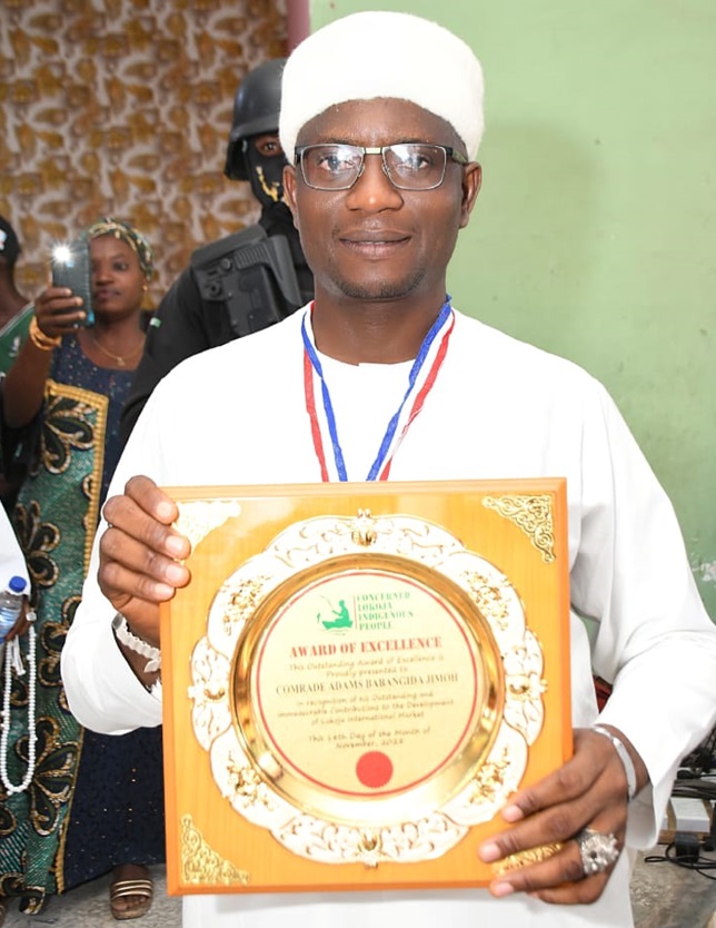 Comrade Adams was on Tuesday honoured with an award by a group, the Concerned Indigenous People of Lokoja, in recognition of his service and exceptional performance in the management of the International Market, Lokoja.