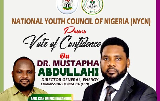 The National Youth Council of Nigeria (NYCN), under the leadership of its President, Comrade Babangida Onimisi Isah, hereby passes a resounding vote of confidence on the Director-General and Chief Executive Officer of the Energy Commission of Nigeria (ECN), Dr. Mustapha Abdullahi after an emergency executive meeting in Abuja, for his remarkable, visionary and youth-friendly leadership since assuming office.