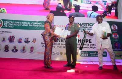 …honored for Excellence in Good Governance The Center for Ethical Conduct Orientation and Empowerment (CECOE), on Thursday, at Merit House, Abuja, bestowed upon Barr...